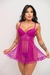 1 Camisola em tule de poá e com renda, sem aro e com bojo, aberta atrás e com regulagem nas alças,calcinha semi fio com regulagem nas laterais.